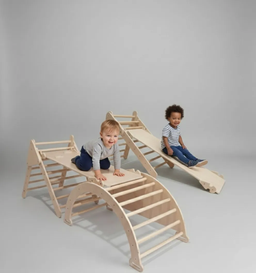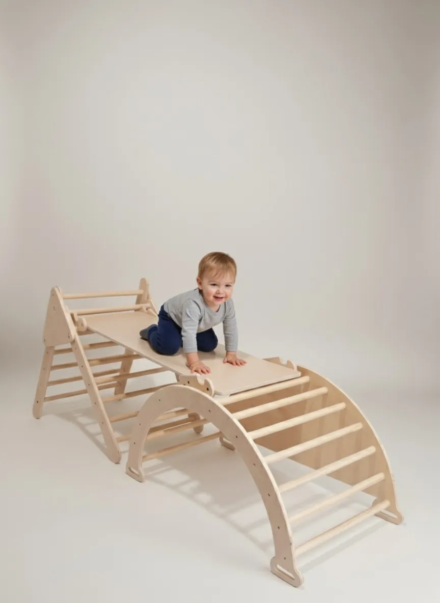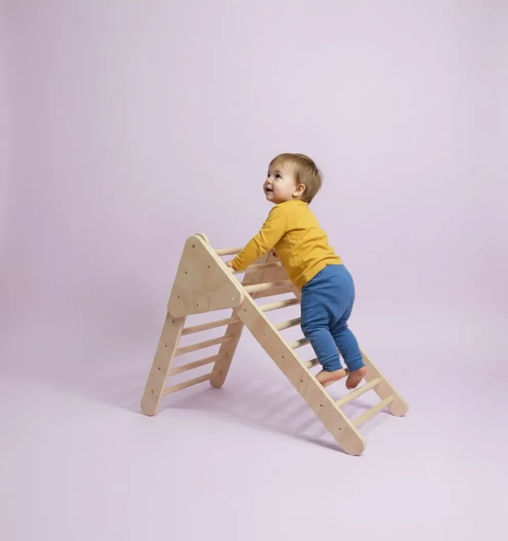 🧗♀️ Triángulo de escalada Pikler: ideal para fomentar la motricidad gruesa, el equilibrio y la confianza.