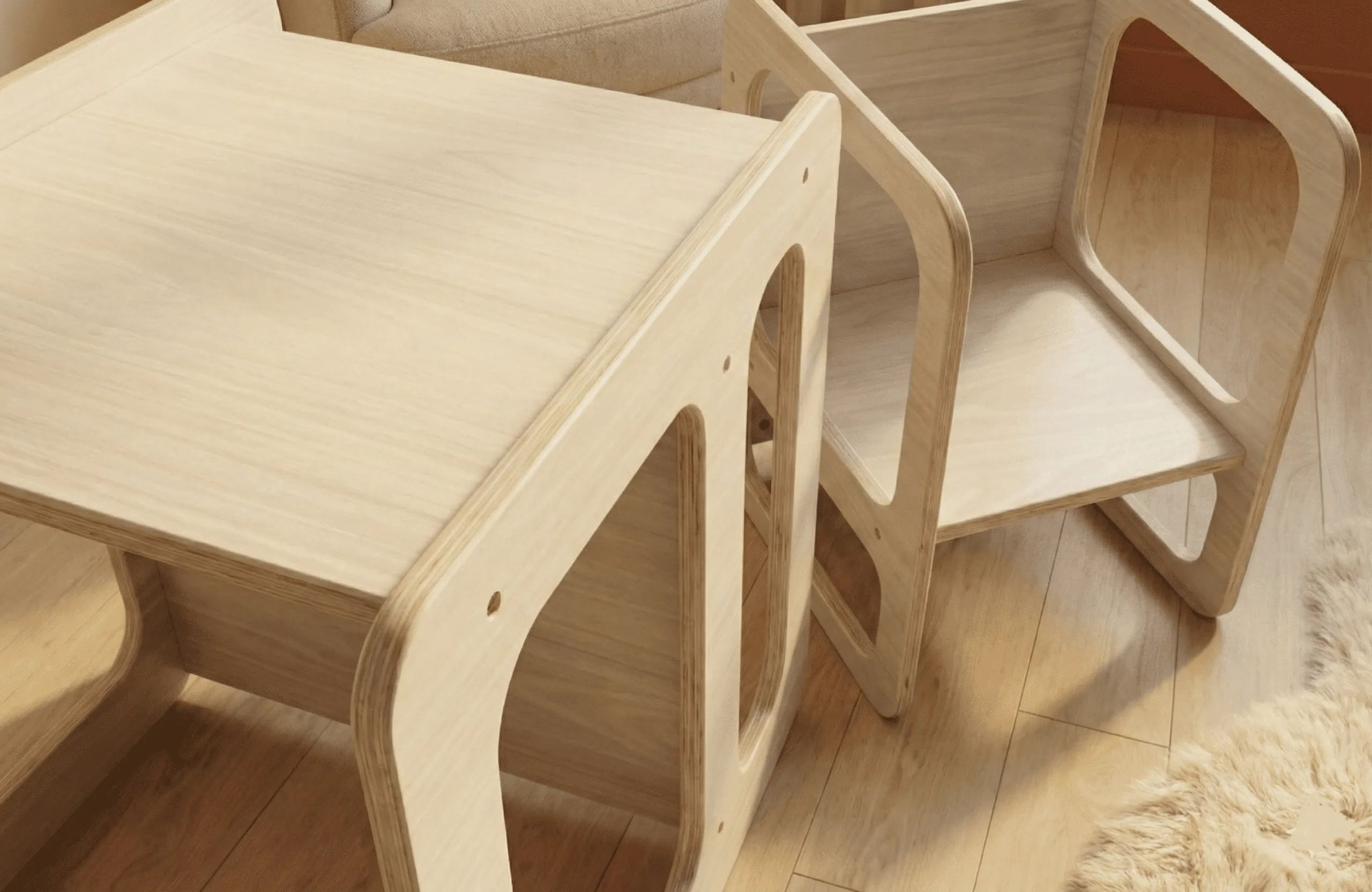 Conjunto Mesa y Silla infantil Montessori | Madera Natural