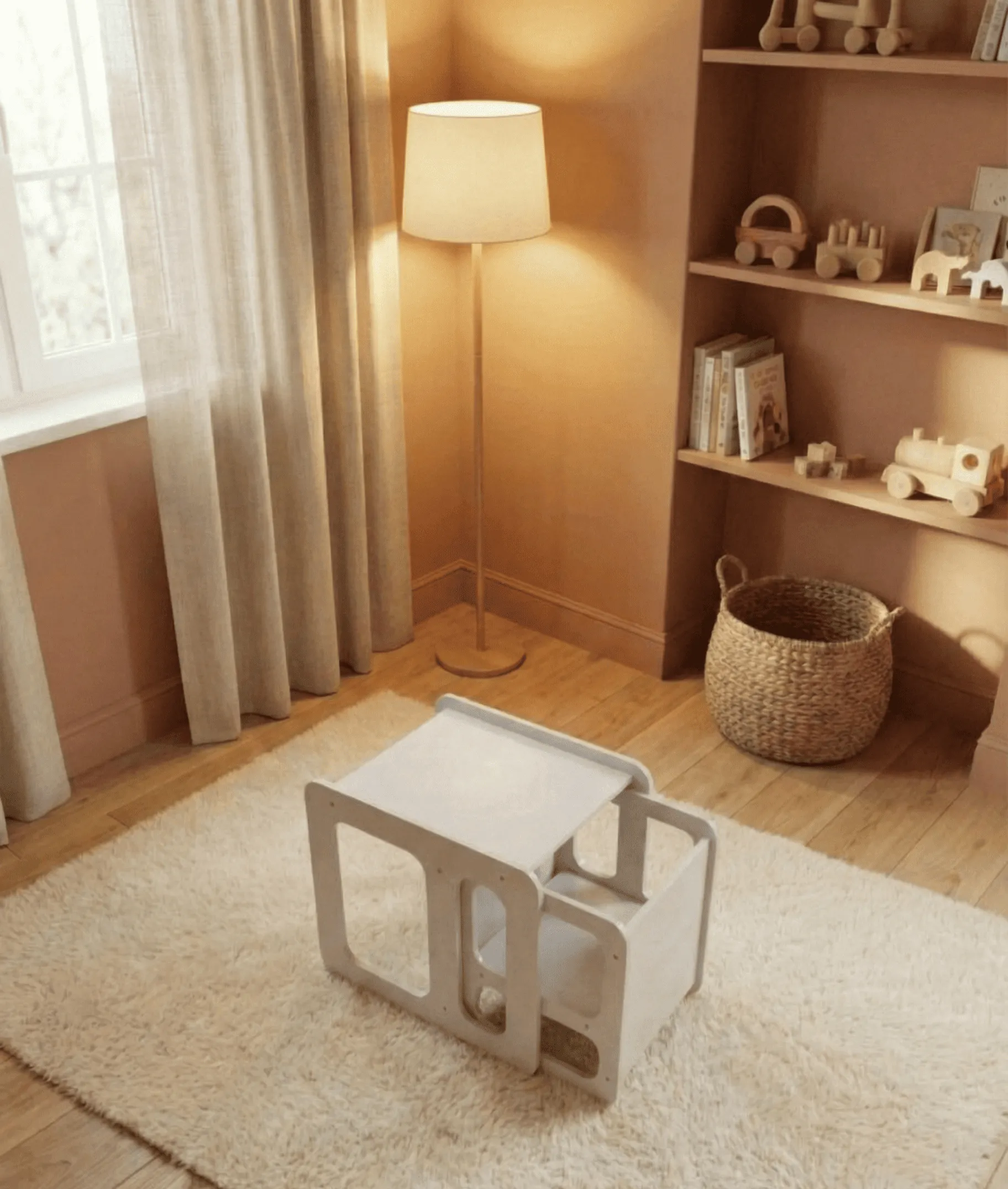 ¡El rincón ideal para que tu peque explore, juegue y aprenda! Este conjunto está diseñado a su medida para que se sienta cómodo, seguro y autónomo mientras dibuja, lee o juega.
