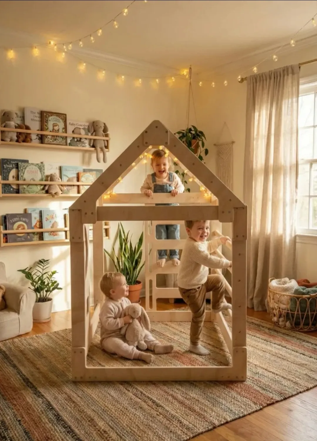La casita de madera escalable es mucho más que un juguete: es un espacio de exploración, juego simbólico y desarrollo motriz diseñado especialmente para los más pequeños.