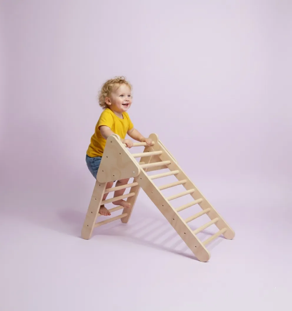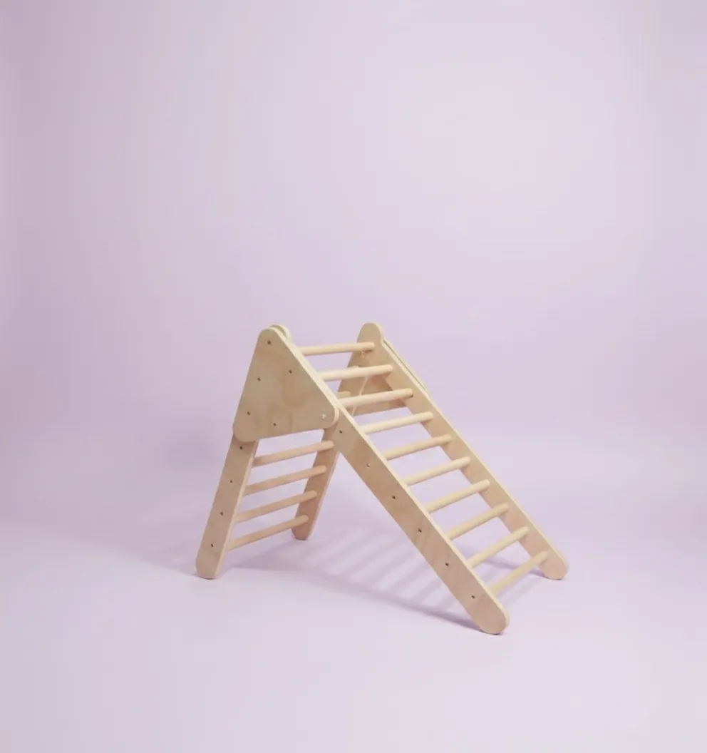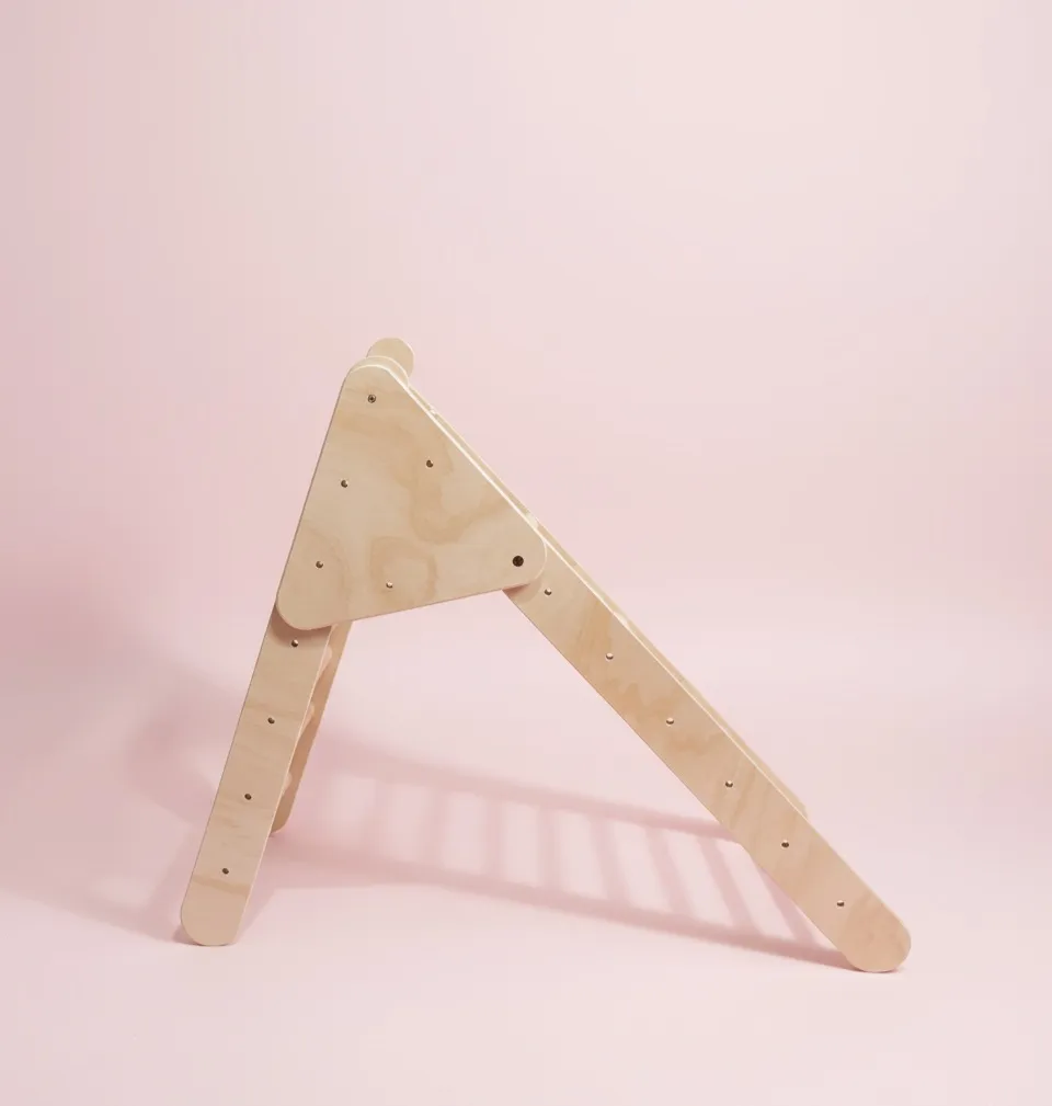 El triángulo de escalada de madera natural es estable, seguro y apto para uso en interiores.
