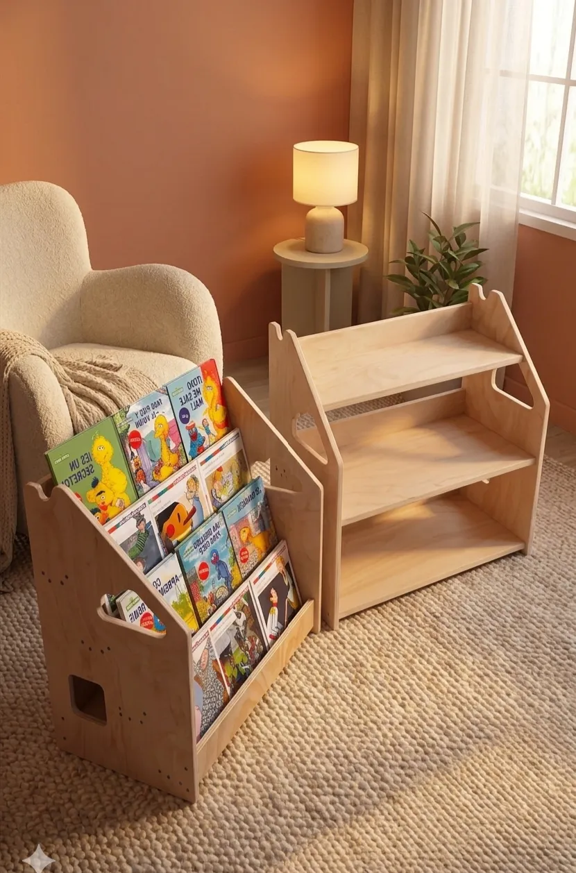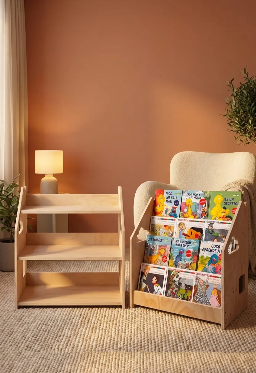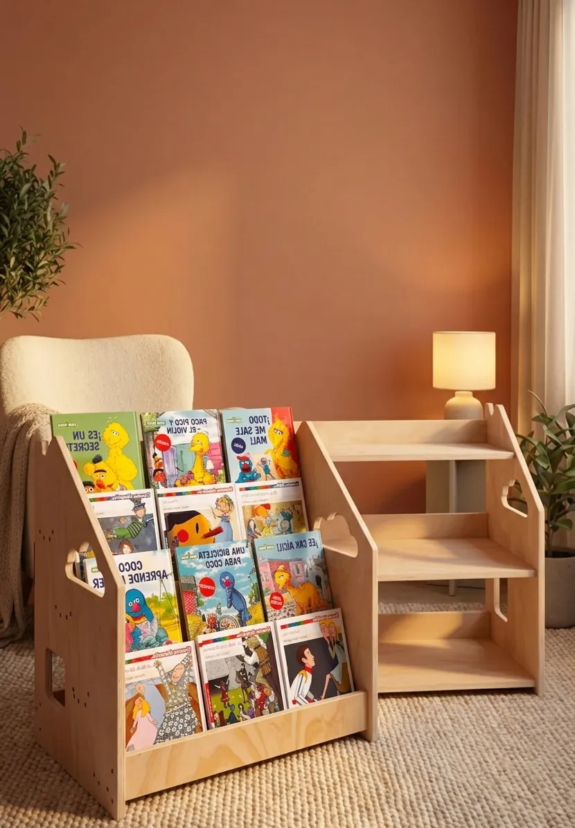 La librería Montessori permite que los niños elijan fácilmente sus libros, favoreciendo la lectura autónoma desde edades tempranas.