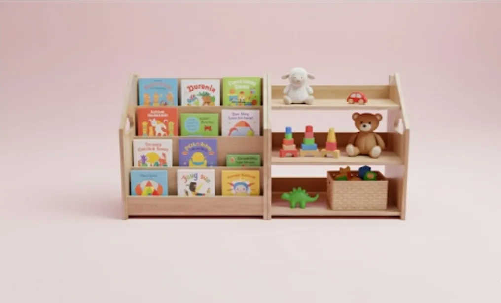 La estantería de juguetes ofrece un lugar perfecto para que puedan guardar, descubrir y ordenar sus materiales de forma sencilla, aprendiendo a ser responsables de su propio espacio.