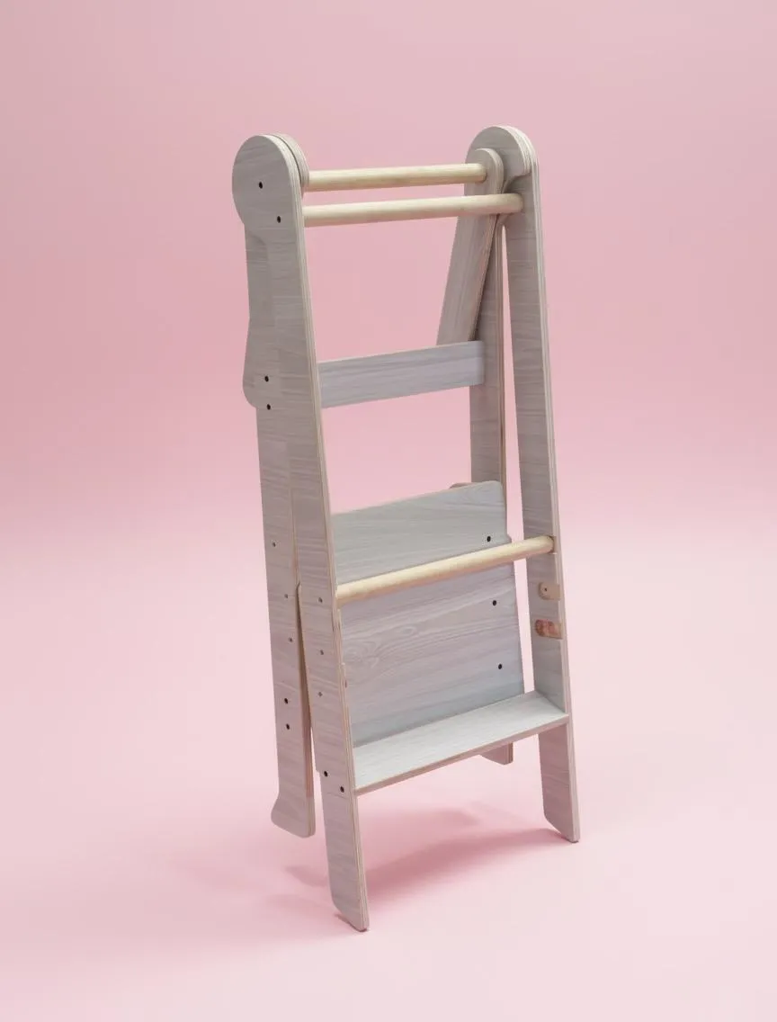 Acompaña el crecimiento de tu peque con esta torre Montessori. Ajustable en 3 alturas, segura y estable, se pliega fácilmente para guardarla sin ocupar espacio. Ideal para fomentar su autonomía en la cocina, baño o juegos.