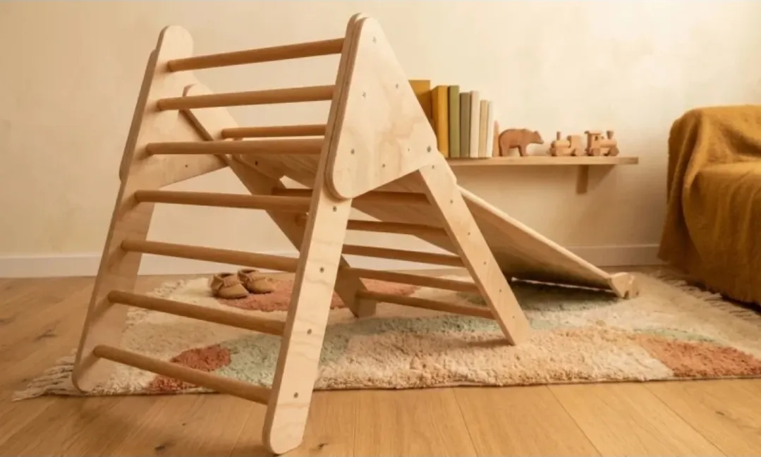 El triángulo de escalada de madera natural es estable, seguro y apto para uso en interiores.